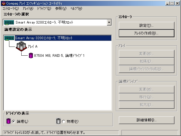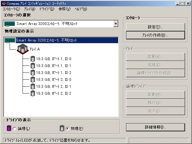 ハードウェアRAIDで構成した複数の物理ドライブからなる1台の論理ドライブは、OSからは1台の物理ドライブとして見えます。