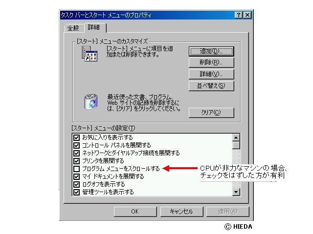 スタートメニューとタスクバーのプロパティ