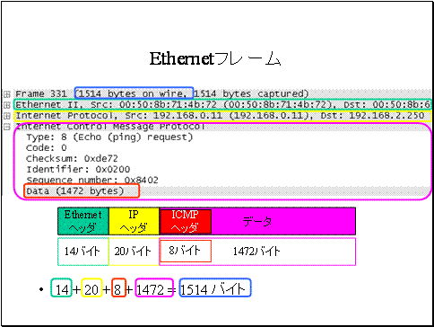 イーサネットデータ最大サイズ 1500バイトに