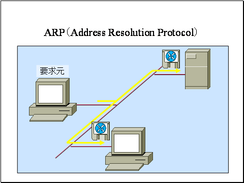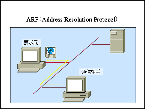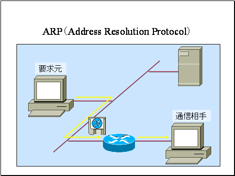 要求元は通信相手の IPアドレスを含むARP 要求パケットをローカルネットワーク上にブロードキャストします。