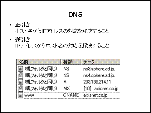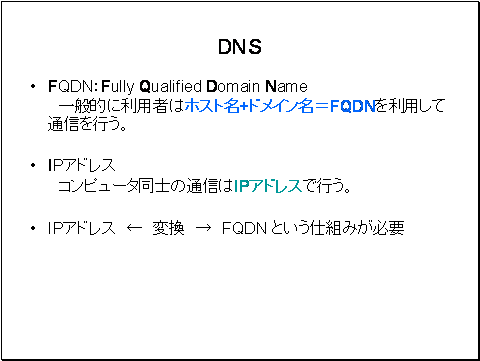 TCP/IPネットワークで、 ホスト名とIPアドレスの対応を解決する場合に DNSは必要なシステムとなっています。