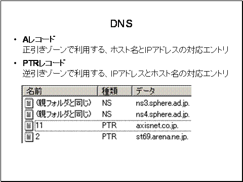 正引きゾーンで利用する、ホスト名とIPアドレスの対応エントリをAレコードと言います。