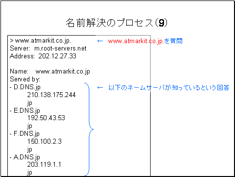 次にホスト名www.atmarkit.co.jpをクエリします。