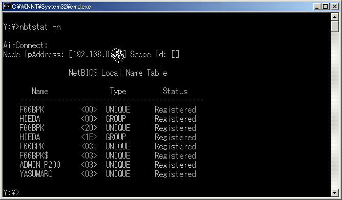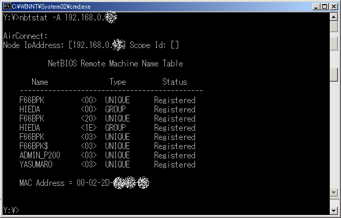 プロトコル統計・カレント接続表示 by NetBIOS on TCP/IP