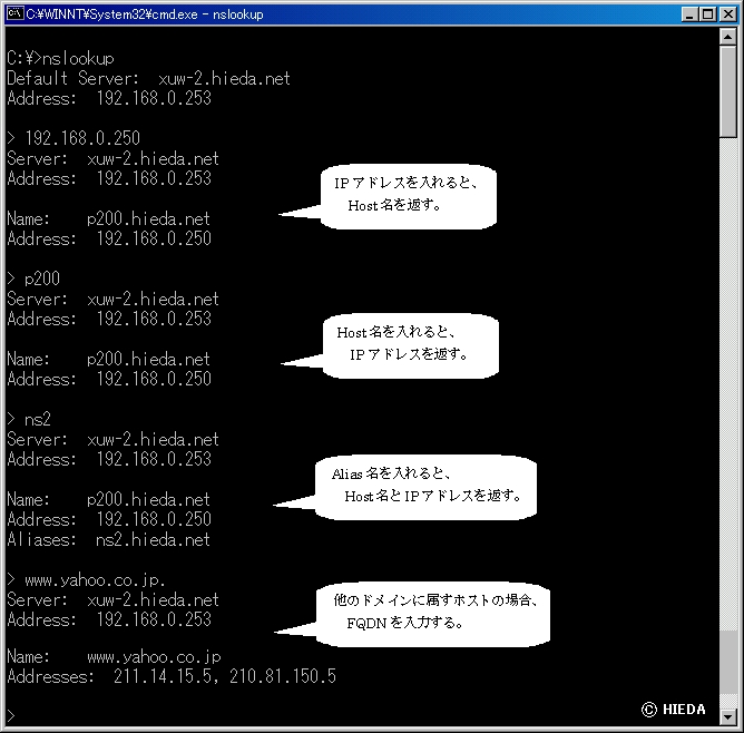 DNSサーバーが持っている「名前解決用」データーベースの内容を確認するコマンド。