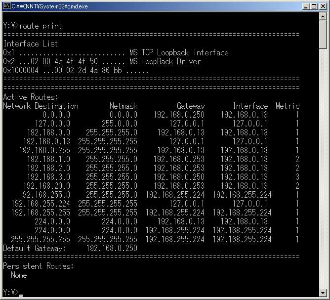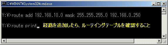 コンピューターが持つルーティングテーブルの設定・確認をするコマンド。