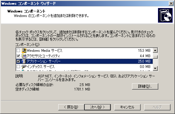 3. 「アプリケーションサーバー」を選択し、「詳細」をクリック。