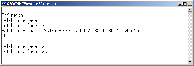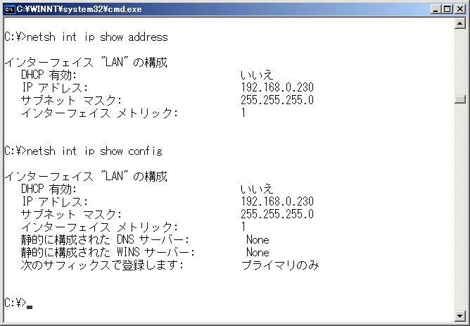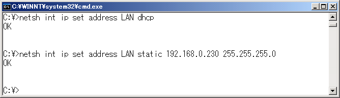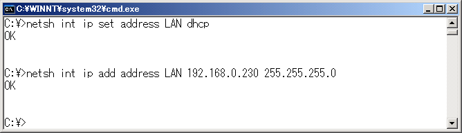 OK表示で設定は受け入れられているはずだ。netsh int ip show address やipconfigで確認してみるとよい。