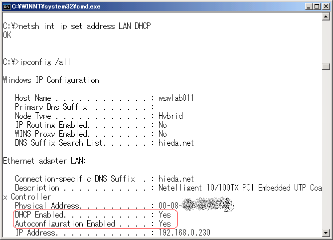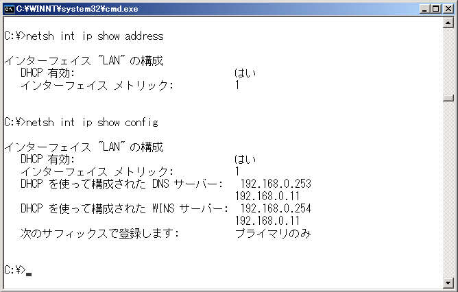 一般的にWindows PCにTCP/IP設定を施すにはTCP/IPのプロパティを利用する。Windows 2000以降のOSではこの方法以外にnetshからでもTCP/IP設定を行えるようになった。当然バッチプログラムで変更することも可能である。 まずはDHCPクライアントとして構成する。