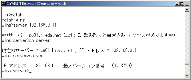 WINSに関してもDHCPと同様netsh winsコンテキスト内で、server ipaddrもしくはserver \\servernameで任意のサーバーにアクセスした後、