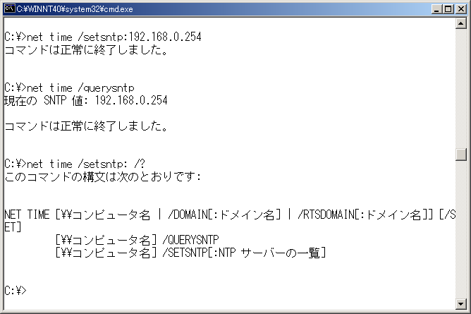 net timeコマンドを利用してネットワーク上の基準コンピュータとの時刻同期を自動化するWindows 2000以降のMicrosoft OSでは、net time /setsntp:ホスト名もしくはIP addrで、インターネットを含めたネットワーク上のNTPサーバー・SNTPサーバーを基準とする時刻同期が可能だ。Windows PCをSNTPサーバーとして構成する場合、桜時計・AdjustPCといったサードパーティのアプリケーションが利用できる。