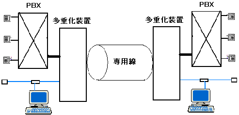 デジタル多重化装置が有名である。この場合の回線は専用線を利用し、