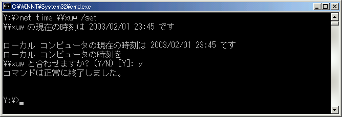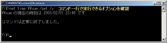 net timeコマンドはネットワーク上のリモートコンピューターの時刻を表示する。