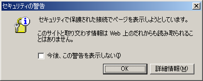 セキュリティで保護されているページからそうではないサイトへ移動する際に、