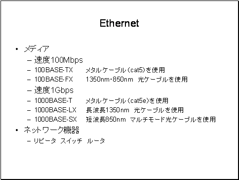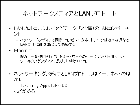 ネットワーキングメディアとLANプロトコルはイーサネットのほかに、