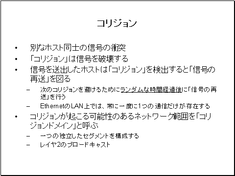 「コリジョンドメイン」はレイヤ2のブロードキャストネットワークです。