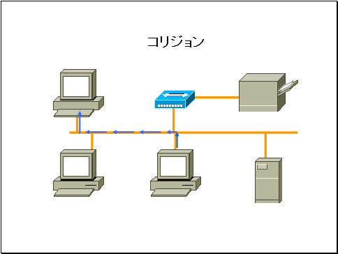別なホスト同士の信号の衝突を「コリジョン」と呼びます。「コリジョン」は信号を破壊し意味のないものとしてしまいます。