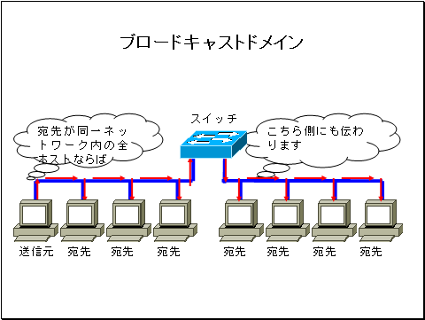 レイヤ3のブロードキャストが到達するネットワーク範囲を、「ブロードキャストドメイン」といいます。