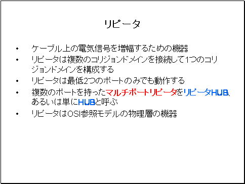 リピータは複数のコリジョンドメインを接続して1つのコリジョンドメインを構成します。