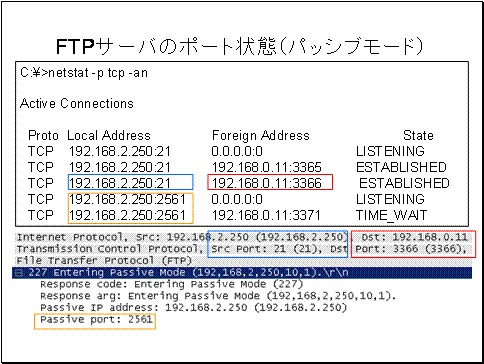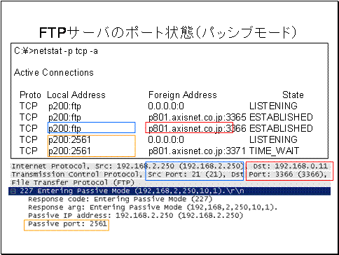 FTPクライアントがパッシブモードで接続中であるFTPサーバのポート状態です。