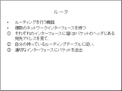 別のネットワークに属しているIPホストと通信するにはIPルーティングを行うルータが必要です。