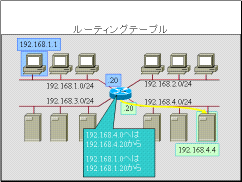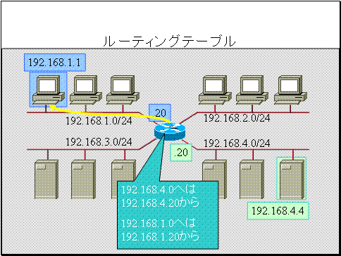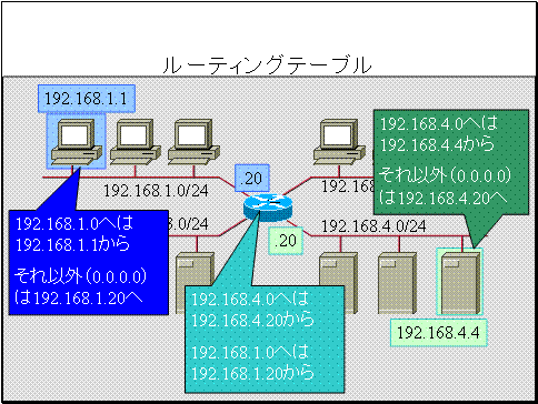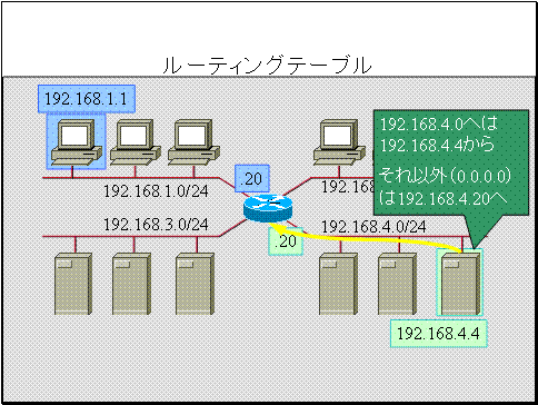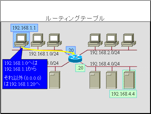 宛先192.168.1.0へはIPアドレス192.168.1.20のホストから送る