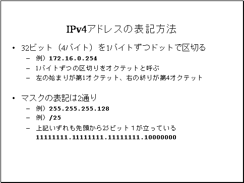 IPv4でのマスクの表記は2通りあります。