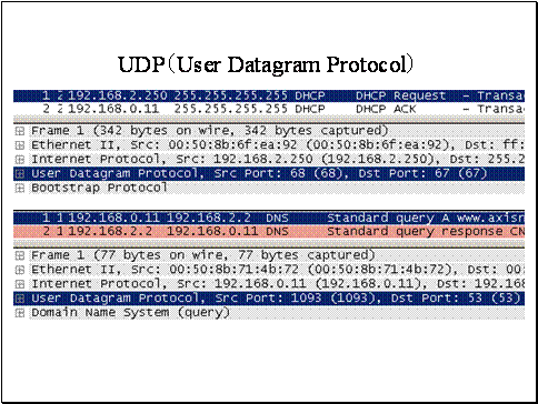 この図では判りませんが、1行下のDHCP ACKはソースポートがUDPポート67番・宛先ポートがUDPポート68番です。