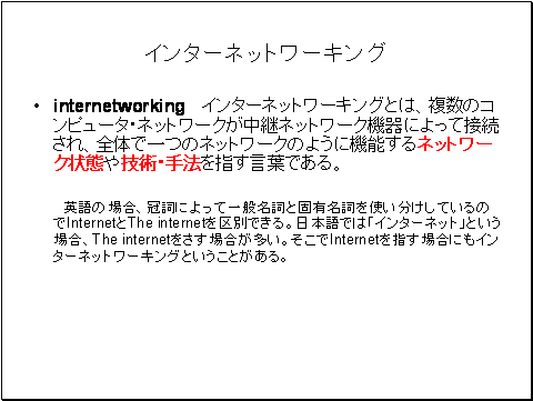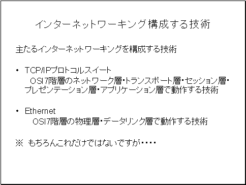 もちろんインターネットワーキングを構成する技術はこれだけではありません。それらについてはまた別な機会に述べることとします。