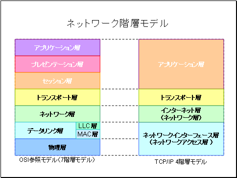その代表的なものに、OSI参照モデルとTCP/IP 4階層モデルがあります。いずれも上位層になるほど利用者に近づきます。