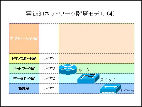中継ネットワーク機器をネットワークモデルに当てはめて見ましょう。