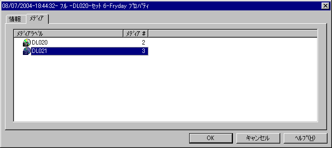 • Backup Execにて、リストアカタログから媒体のプロパティを見ると、3本目のテープに3/3がいることが表示されている。