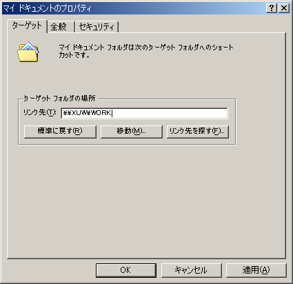 My Documentのリンク先を、先の\\%computername%\work もしくは\\%computername%\home にする。