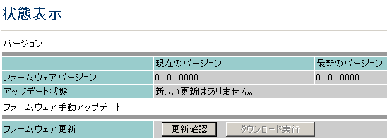 状態表示のページの中に現在バージョンと、NTT東日本のサーバにある最新のファームバージョンが表示してある。このサーバが、