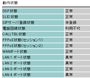 と言う状態である。これでは着信も判らない。 何時から切れていたのかも判らない。障害ログには5/4に同症状で再起動した時のログが最終である。と言う事は「電源断」も「リブートむもおきていない。PPPoEのインターネット接続も繋がったまま。(アドレスが変化していない事はDNS登録で確認済み)再起動すれば接続するが、又何時切れてしまうのかね?