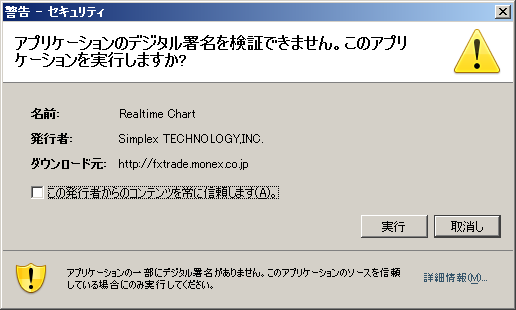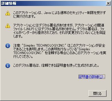 OSとJavaのプラットフォームと、双方から、セキュリティの警告を受ける。