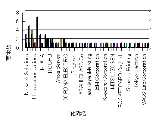 組織ユーザーにインターネット接続を提供する、商用または非営利団体、学術・行政機関などの、インターネット ドメイン で識別される団体や組織です。Microsoft Site Server Analysis は同じ組織に登録されたすべてのドメインを 1 つの組織としてグループ化します。ドメインがデータベースで使用できない場合は、1 つのインターネット ドメインが 1 つの組織を識別するのに使用されます。