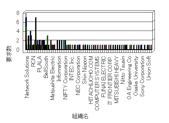 組織ユーザーにインターネット接続を提供する、商用または非営利団体、学術・行政機関などの、インターネット ドメイン で識別される団体や組織です。Microsoft Site Server Analysis は同じ組織に登録されたすべてのドメインを 1 つの組織としてグループ化します。ドメインがデータベースで使用できない場合は、1 つのインターネット ドメインが 1 つの組織を識別するのに使用されます。
