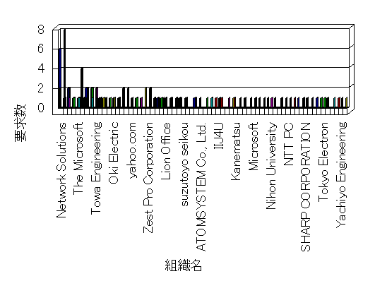 組織ユーザーにインターネット接続を提供する、商用または非営利団体、学術・行政機関などの、インターネット ドメイン で識別される団体や組織です。Microsoft Site Server Analysis は同じ組織に登録されたすべてのドメインを 1 つの組織としてグループ化します。ドメインがデータベースで使用できない場合は、1 つのインターネット ドメインが 1 つの組織を識別するのに使用されます。