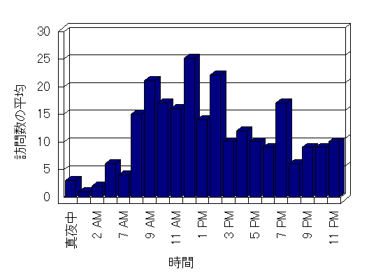 要求数と訪問数の平均と、訪問あたりの要求数の平均を時刻ごとに示します。