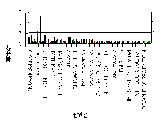 組織ユーザーにインターネット接続を提供する、商用または非営利団体、学術・行政機関などの、インターネット ドメイン で識別される団体や組織です。Microsoft Site Server Analysis は同じ組織に登録されたすべてのドメインを 1 つの組織としてグループ化します。ドメインがデータベースで使用できない場合は、1 つのインターネット ドメインが 1 つの組織を識別するのに使用されます。