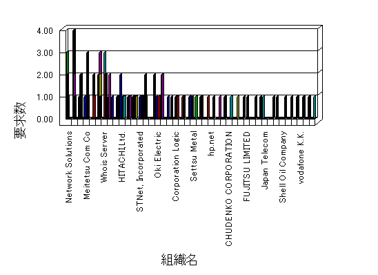 組織ユーザーにインターネット接続を提供する、商用または非営利団体、学術・行政機関などの、インターネット ドメイン で識別される団体や組織です。Microsoft Site Server Analysis は同じ組織に登録されたすべてのドメインを 1 つの組織としてグループ化します。ドメインがデータベースで使用できない場合は、1 つのインターネット ドメインが 1 つの組織を識別するのに使用されます。