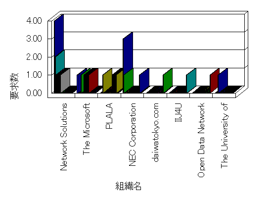 組織ユーザーにインターネット接続を提供する、商用または非営利団体、学術・行政機関などの、インターネット ドメイン で識別される団体や組織です。Microsoft Site Server Analysis は同じ組織に登録されたすべてのドメインを 1 つの組織としてグループ化します。ドメインがデータベースで使用できない場合は、1 つのインターネット ドメインが 1 つの組織を識別するのに使用されます。