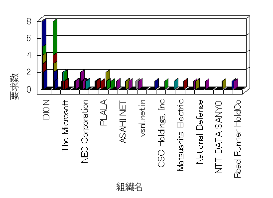 組織ユーザーにインターネット接続を提供する、商用または非営利団体、学術・行政機関などの、インターネット ドメイン で識別される団体や組織です。Microsoft Site Server Analysis は同じ組織に登録されたすべてのドメインを 1 つの組織としてグループ化します。ドメインがデータベースで使用できない場合は、1 つのインターネット ドメインが 1 つの組織を識別するのに使用されます。