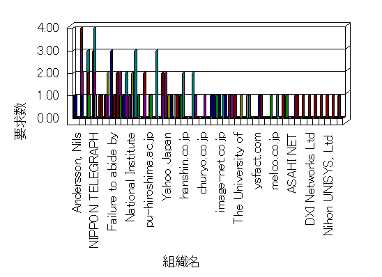 組織ユーザーにインターネット接続を提供する、商用または非営利団体、学術・行政機関などの、インターネット ドメイン で識別される団体や組織です。Microsoft Site Server Analysis は同じ組織に登録されたすべてのドメインを 1 つの組織としてグループ化します。ドメインがデータベースで使用できない場合は、1 つのインターネット ドメインが 1 つの組織を識別するのに使用されます。