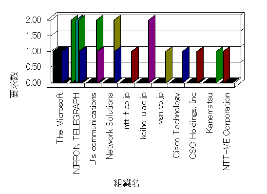 組織ユーザーにインターネット接続を提供する、商用または非営利団体、学術・行政機関などの、インターネット ドメイン で識別される団体や組織です。Microsoft Site Server Analysis は同じ組織に登録されたすべてのドメインを 1 つの組織としてグループ化します。ドメインがデータベースで使用できない場合は、1 つのインターネット ドメインが 1 つの組織を識別するのに使用されます。