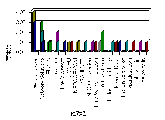 組織ユーザーにインターネット接続を提供する、商用または非営利団体、学術・行政機関などの、インターネット ドメイン で識別される団体や組織です。Microsoft Site Server Analysis は同じ組織に登録されたすべてのドメインを 1 つの組織としてグループ化します。ドメインがデータベースで使用できない場合は、1 つのインターネット ドメインが 1 つの組織を識別するのに使用されます。