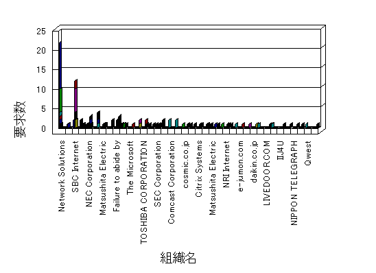 組織ユーザーにインターネット接続を提供する、商用または非営利団体、学術・行政機関などの、インターネット ドメイン で識別される団体や組織です。Microsoft Site Server Analysis は同じ組織に登録されたすべてのドメインを 1 つの組織としてグループ化します。ドメインがデータベースで使用できない場合は、1 つのインターネット ドメインが 1 つの組織を識別するのに使用されます。