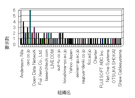 組織ユーザーにインターネット接続を提供する、商用または非営利団体、学術・行政機関などの、インターネット ドメイン で識別される団体や組織です。Microsoft Site Server Analysis は同じ組織に登録されたすべてのドメインを 1 つの組織としてグループ化します。ドメインがデータベースで使用できない場合は、1 つのインターネット ドメインが 1 つの組織を識別するのに使用されます。