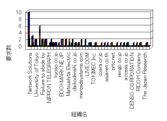 組織ユーザーにインターネット接続を提供する、商用または非営利団体、学術・行政機関などの、インターネット ドメイン で識別される団体や組織です。Microsoft Site Server Analysis は同じ組織に登録されたすべてのドメインを 1 つの組織としてグループ化します。ドメインがデータベースで使用できない場合は、1 つのインターネット ドメインが 1 つの組織を識別するのに使用されます。